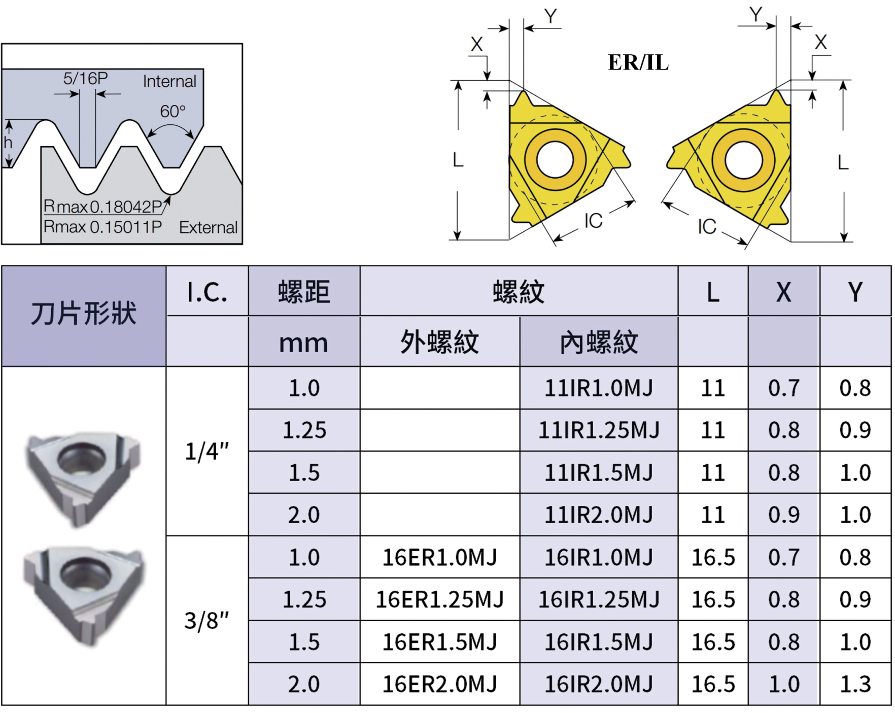 公制航空航天螺紋刀片MJ 完全型